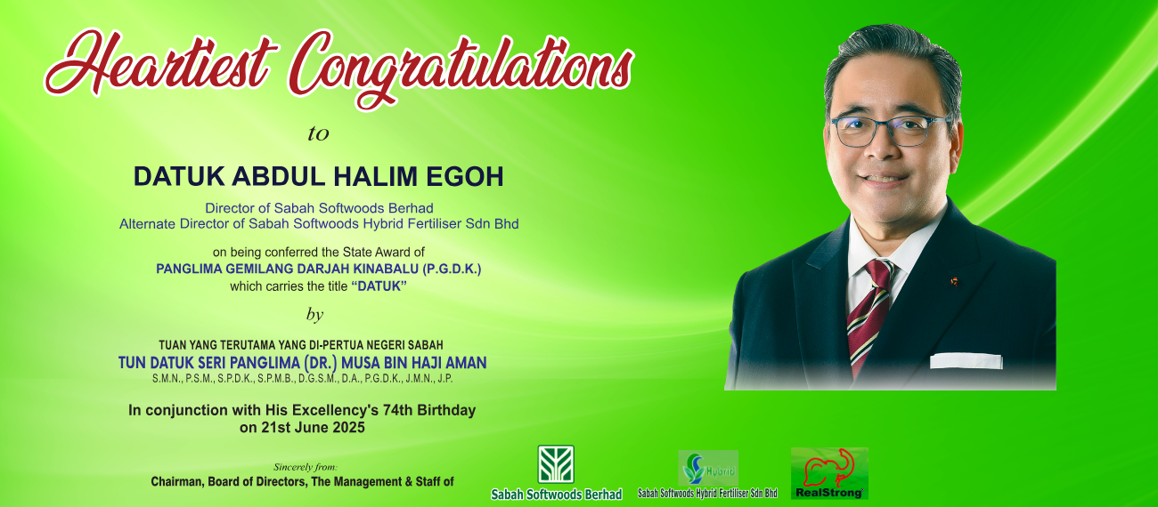 Sabah Softwoods Berhad (SSB) is the pioneer company thatventured into large scale commercial tree plantation in Malaysia. Its objective is to replant fast growing tree species on a shorter rotation period in a homogenous manner which will enhance the yield per hectare with higher operating efficiencies at optimum cost.
